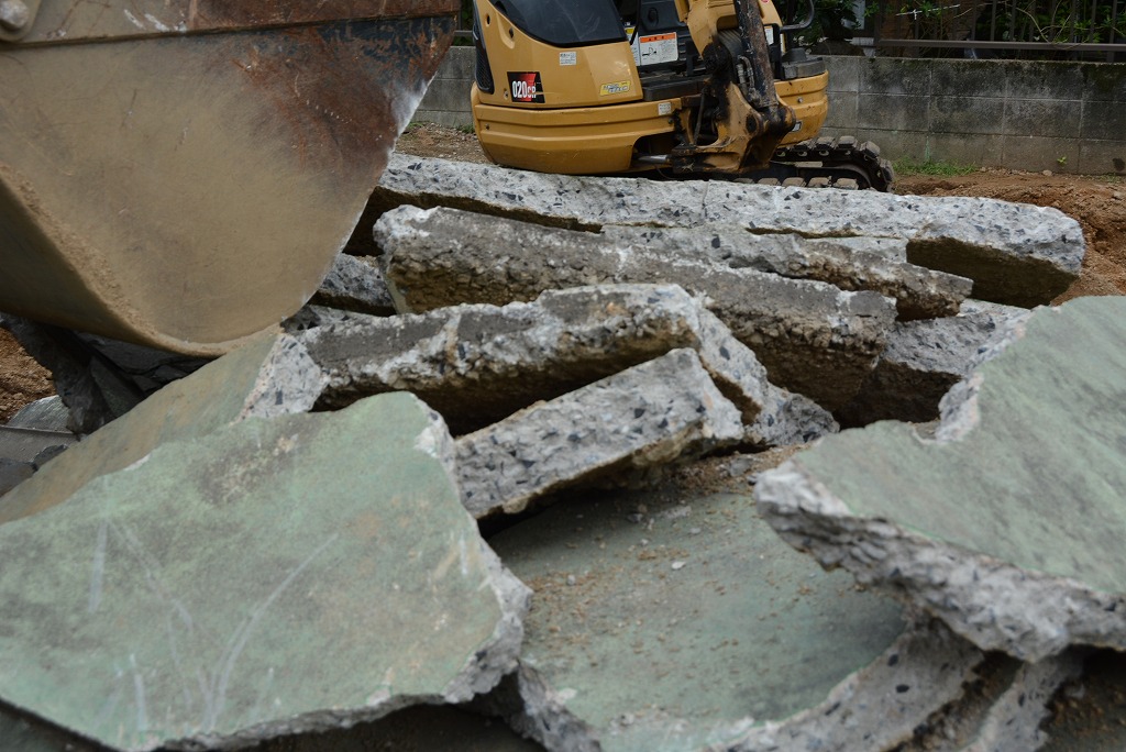 建物本体と基礎も撤去し、玄関前付近の土間コンを残すのみになりました。