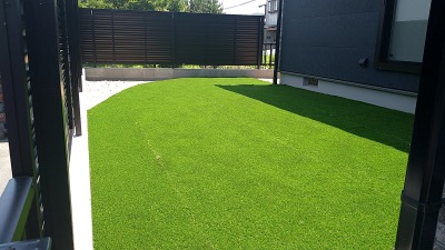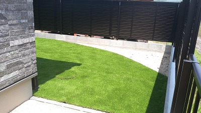 中庭には人工芝を敷き詰めてコーナーに植栽をする予定です。