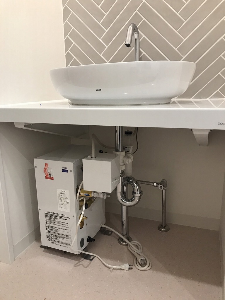 個別の電気式給湯器を設置し、手洗いの優しい温度のお湯が吐出するように