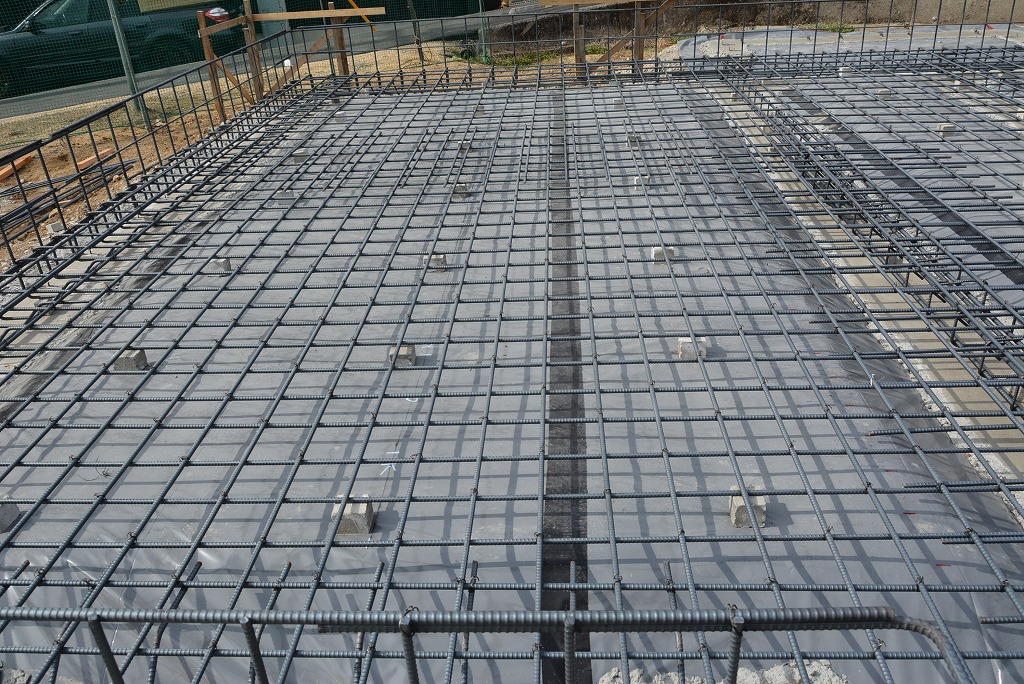 乗せてから、メッシュ状に鉄筋を組み上げていきます。