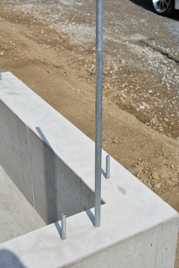 ドブ漬けの溶融亜鉛メッキ処理した、アンカーボルトとホールダウンアンカーが