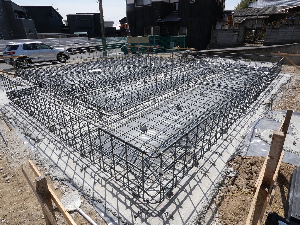 外周の立上りの配筋も組み上がりました。