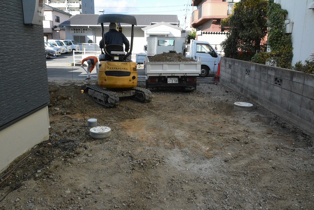 駐車場スペースと、親族宅の延長敷地分を一緒に、土間コンクリート仕上げにします。