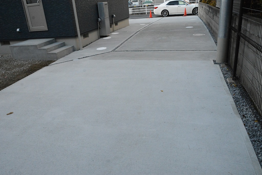 水掃けと割れ防止と、駐車時のガイドラインとしての役目を兼ねた