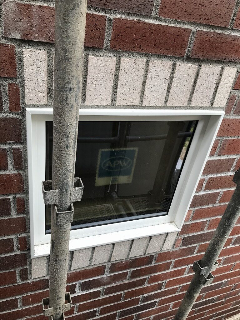 窓の上下に縦使いの白レンガが入ります。