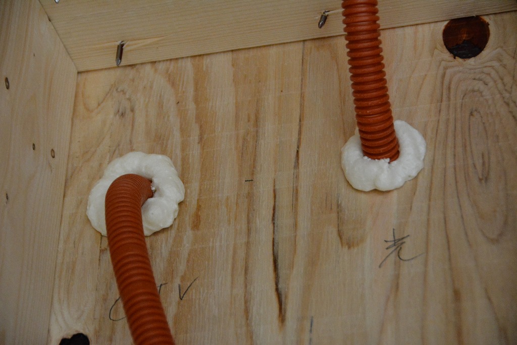 CD管の壁面貫通部にはあらかじめ、ウレタンをスプレーして