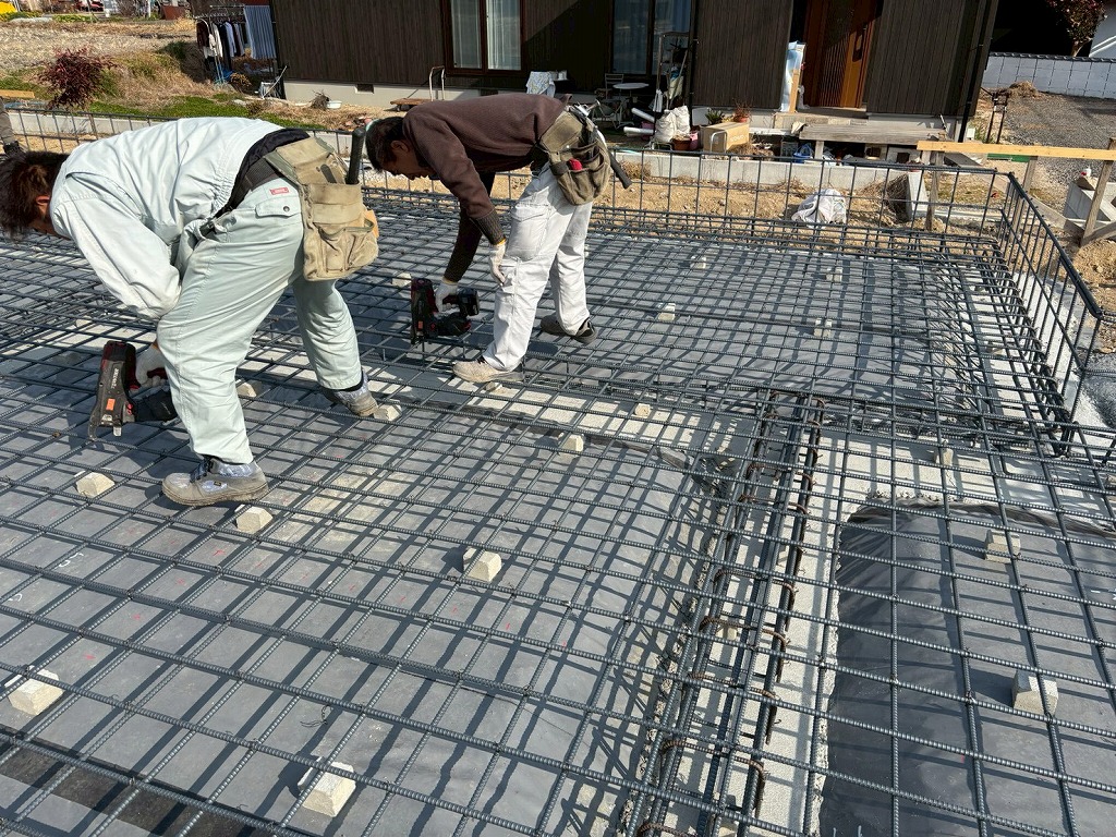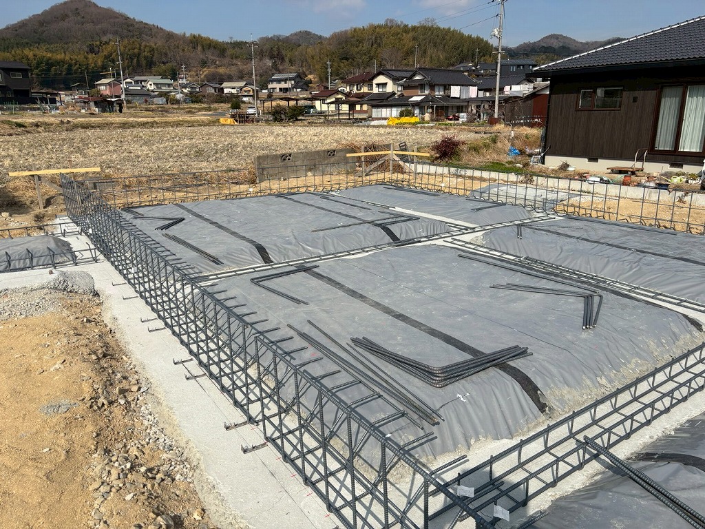 ベタ基礎の外周部の基礎ベースとなる配筋工事が終わりました。