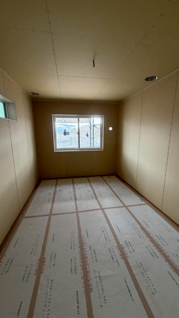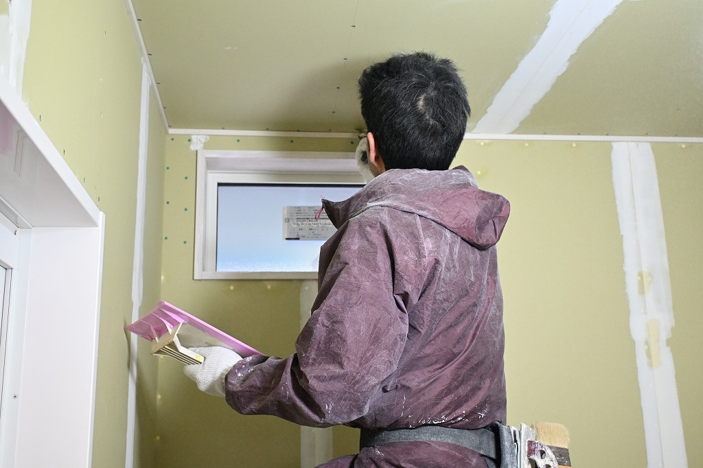 続いて、インテリア山崎チームが入って、クロス張りの下地となる