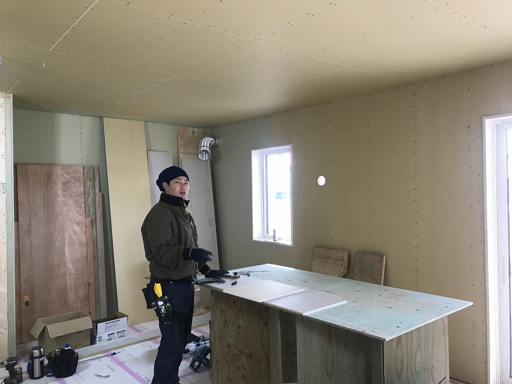 ボードと建具枠などが完了すれば、堂後大工たちも