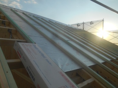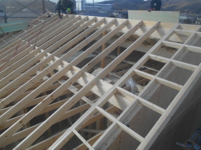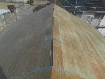 2階の構造体まで出来上がったので、次に屋根材の施工に取り掛かります。