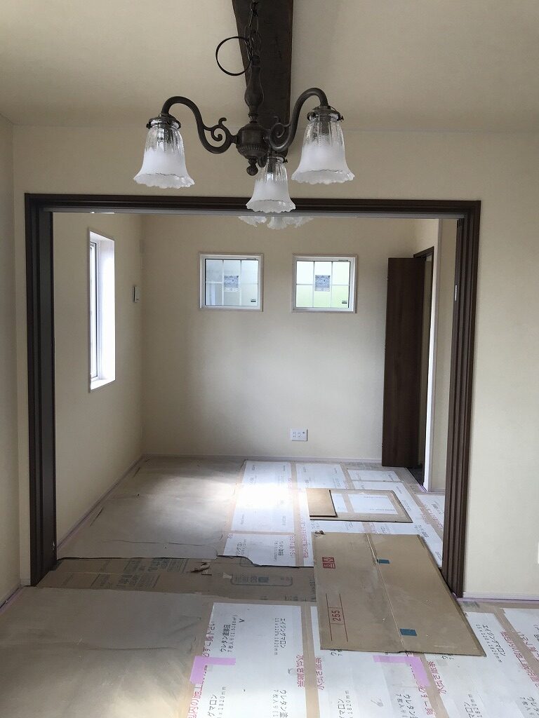 造作工事も終わり、クロス屋さんが入って壁紙を張り始めます。