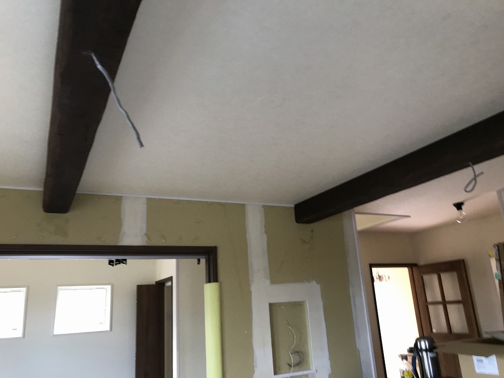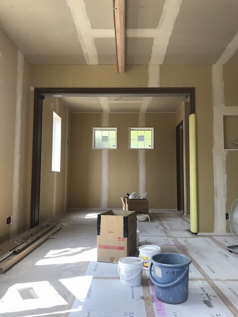 石膏ボードのつなぎ目などをパテ埋めしていきます。