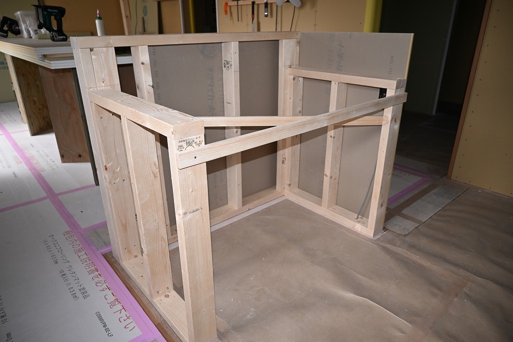 大工さん。ボードと骨組み作り。