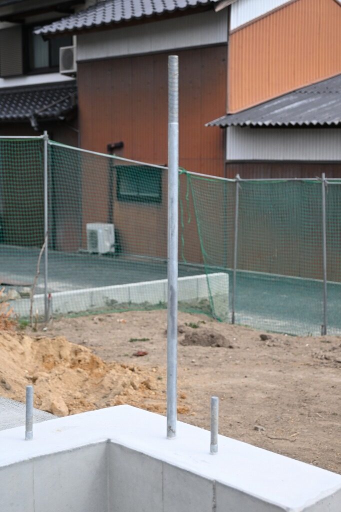 他のアンカーボルトと比べて、大きく長い「ホールダウン用アンカーボルト」が目を引きます。